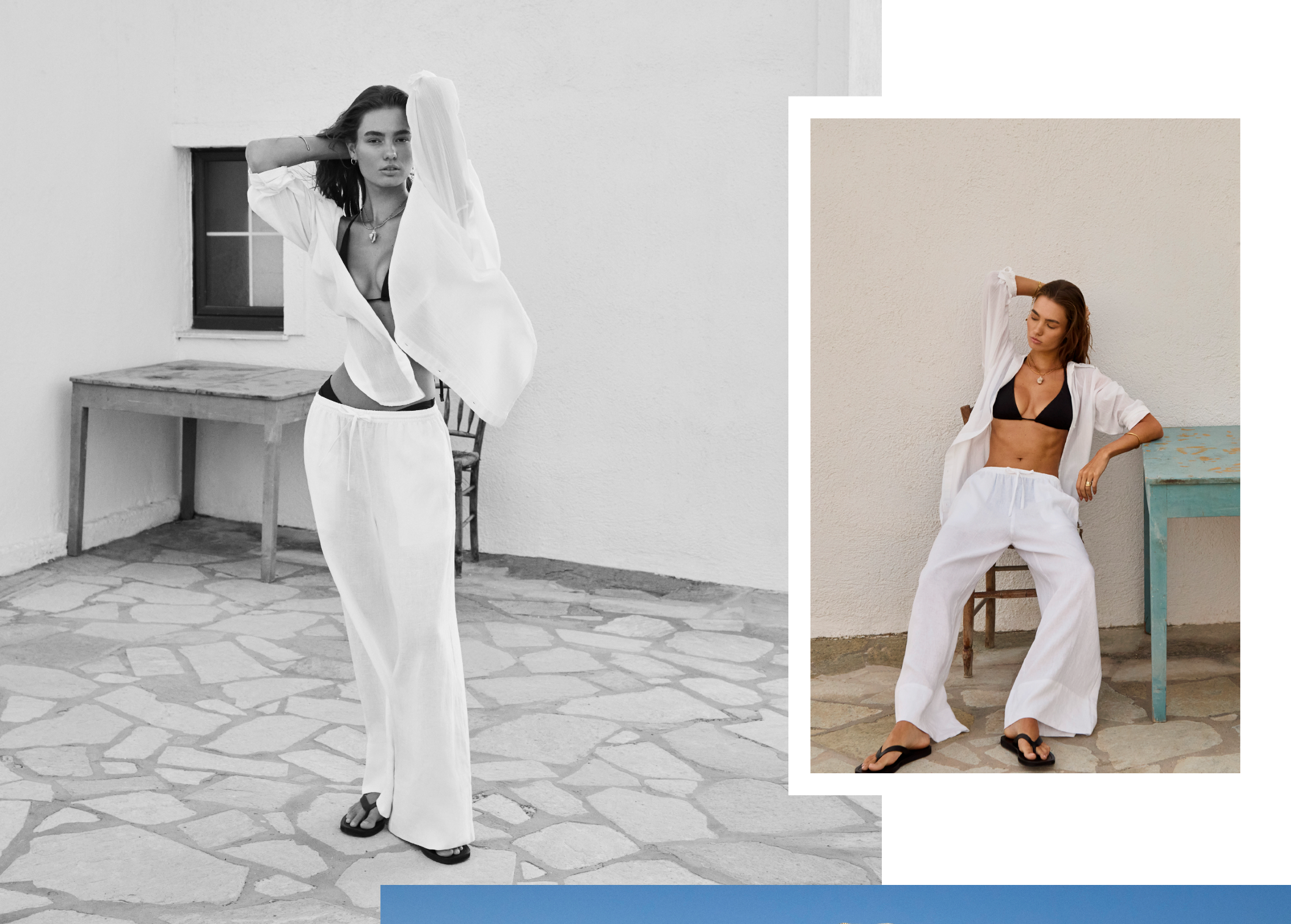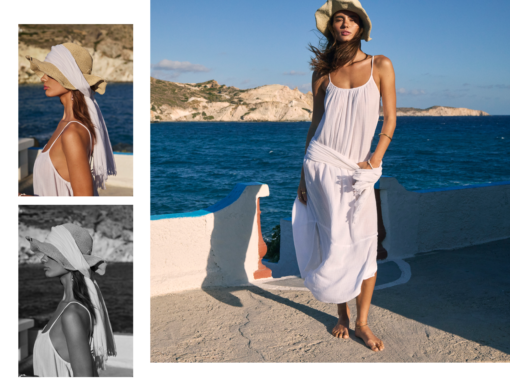 What unfolds is a visual narrative of elegance and intention. The soft palette mirrors the shoreline, the textures reflect the rugged beauty of the island, and the styling speaks to a certain nonchalance — the kind we chase when we’re far from routine. Each image evokes the gentle rhythm of island life, where dressing becomes instinctive and beauty is found in the understated.