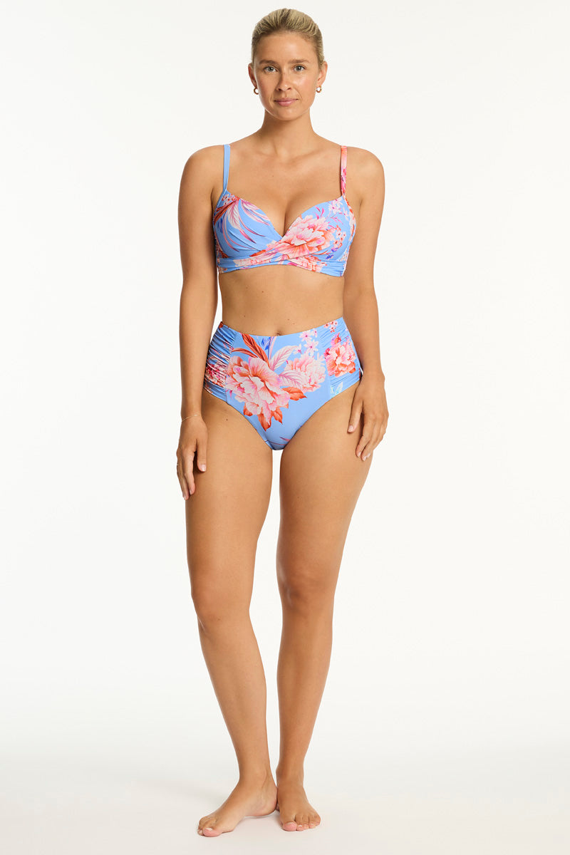 Inspired by modern romance, the Indochine collection is a bold interpretation of tropical swimwear for the season ahead. Here, bursts of florals play with vibrant palm prints on some of the most evocative and body-contouring shapes of the season. Indochine swim collection is made with Eco recycled shell, internal linings and powermesh on a luxe smooth lycra. Each swimsuit contains over 70% recycled materials.