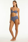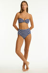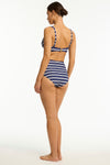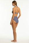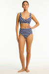 Biarritz is crafted from a textured waffle base fabric with bold stripes and gold hardware accents - designed to enhance our simplistic yet elegant silhouettes. We love the 70's nautical inspiration – imagine beach walks at sunset and Aperol spritzes by the pool and you’re there.