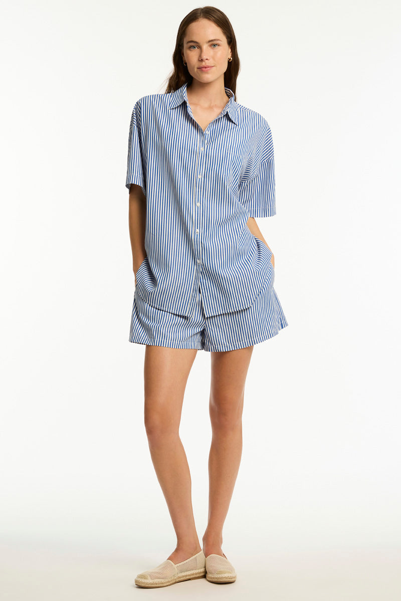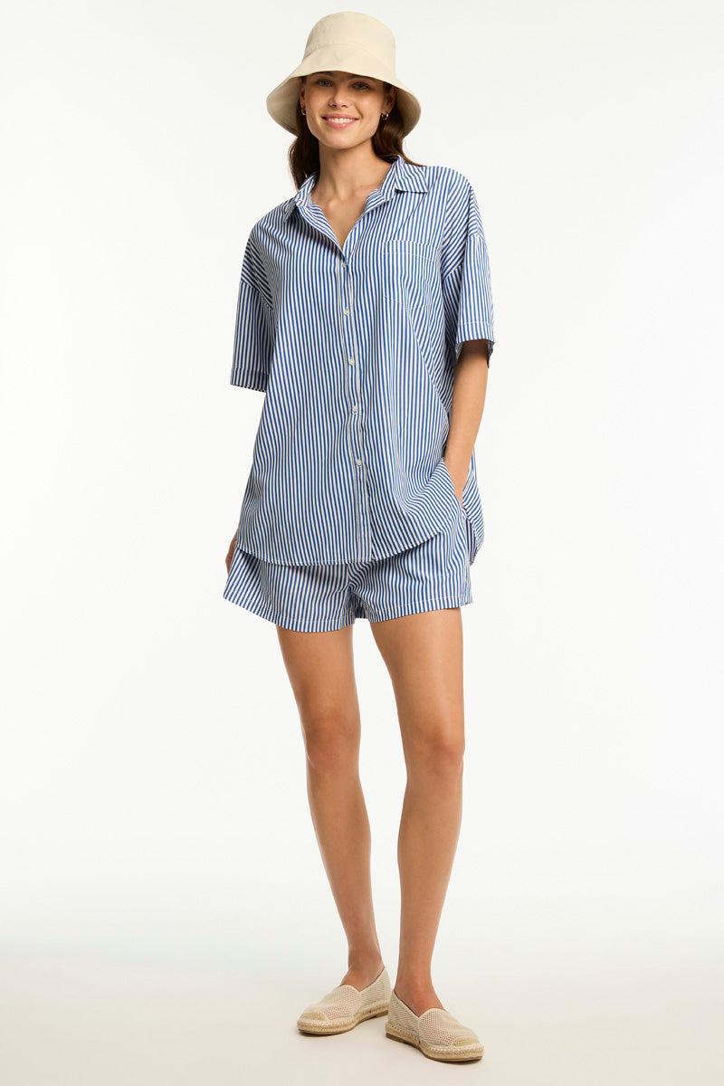 Boathouse is your go-to for effortless resort style, featuring a timeless blue and white stripe design. Designed for easy layering over swimwear, or mix-and-match colours for polished resort chic.